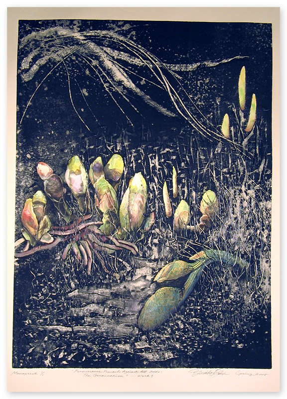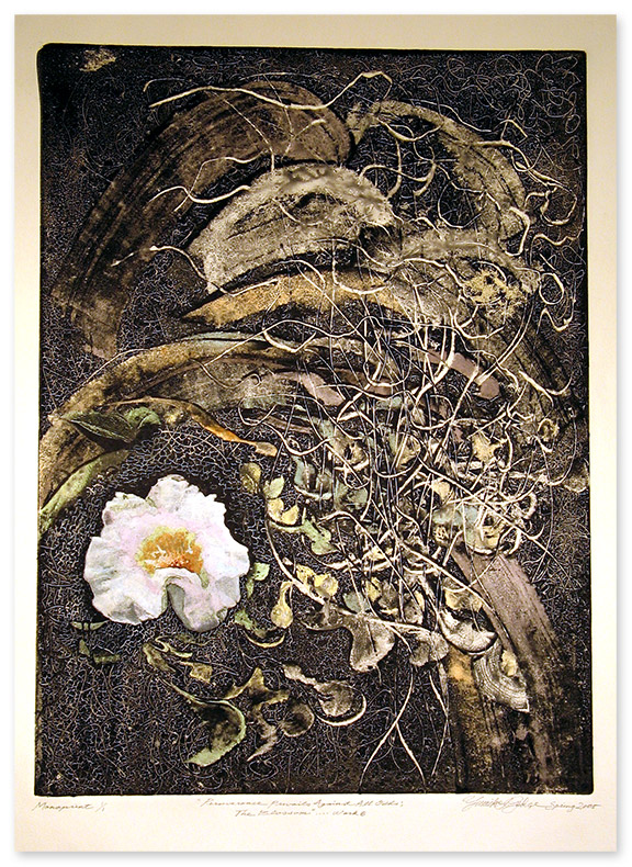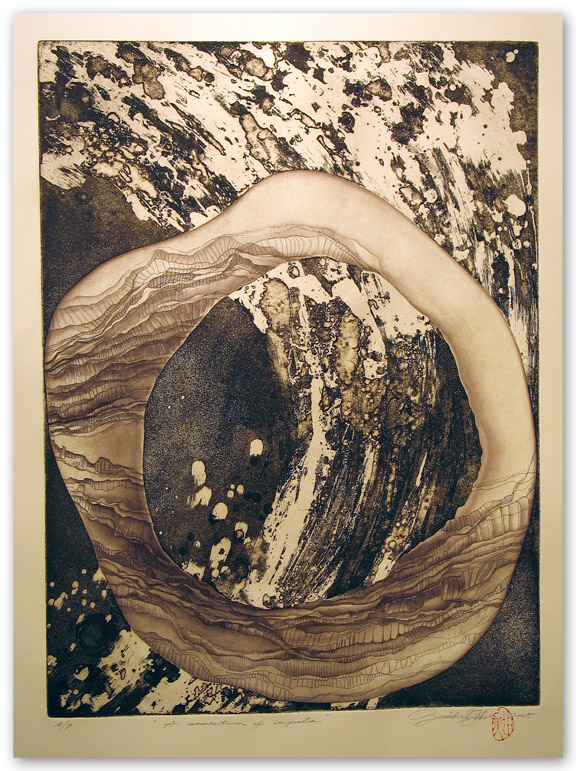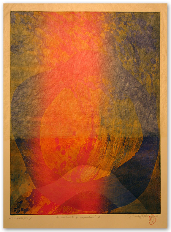 Being of Japanese heritage and having underlying Eastern philosophies, I am profoundly aware of my native aesthetic. At the same time, for many years I have been exposed to international influences which continue to affect my work at both conscious and unconscious levels. As a multicultural artist, I wrestle with both the Western conception of art, based on the notion of individualism, and the Eastern perceptions that are rooted in long established tradition. Over the years, some of my work; Collagraph prints has been evolved with the metaphysical notion of an illusive, flat surface into an actual three-dimensional depth. I construct multiple prints in an unconventional way to create a single work of art which often imply ambiguity in the duality between microcosm; in which the human body itself provides an archetype of the universe and to a macrocosm; in which nature can contain either the centrifugal forces of energy as well as the changing process of evolution and erosion. The layers of desiccated and eroded paper peel back image of magma from the center core of the Earth…. The vitalities of the natural phenomena or the boiling passion and rage of human emotions revealed? I depict these traits with detail and flow of contours, visual masses and flux. I often use genuine Japanese traditional materials; such as Washi paper, Nikawa & Funiri glue, as well as Sumi ink with natural pigment ; Ganryo and method of Urauchi & Mizubari in order to create untraditional own singular prints: Monoprint (Monotype ) in addition to Collagraph Print Construction. SELECTED EXHIBITIONS 2005 “ NEW WORKS ” by Yumiko Irei-Gokce at KRAFT LIEBERMAN GALLERY